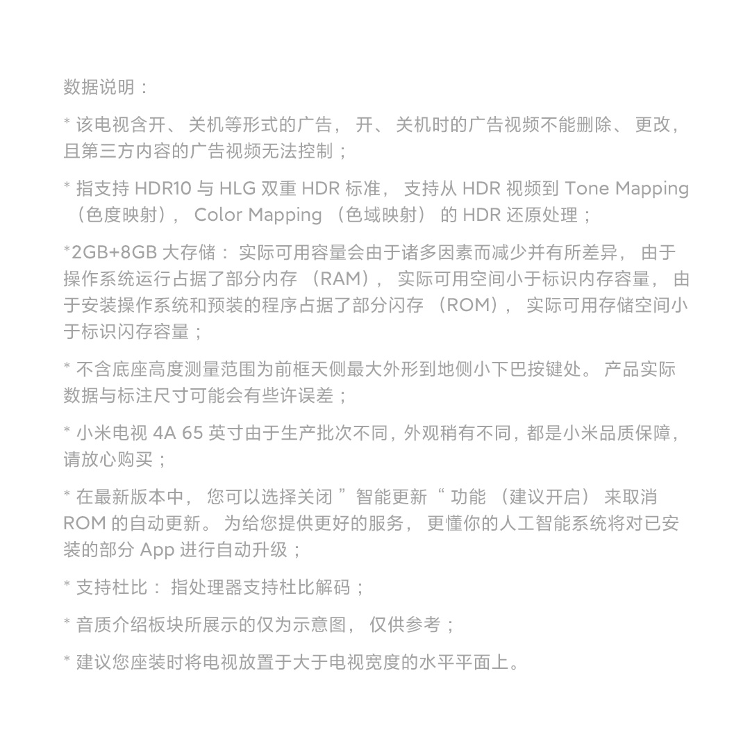 Экран: экран True 4K Ultra HD Разрешение: 3840*2160 3D: не поддерживается Подсветка: Xiaomi / Ruixuan совместно разработали светодиод с прямым освещением Динамическая Подсветка: не поддерживается NTSC: 72% Угол обзора: 178 ° Динамический отклик: 8 мс
