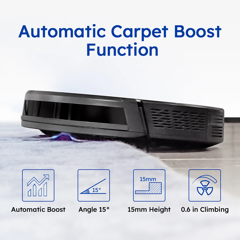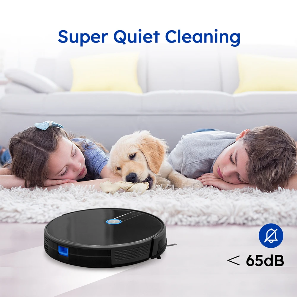 3 дюймов супер тонкий робот-пылесос тщательно изготовлены с заботой и изготовлен из высокого качества. Он обладает высокой производительностью всасывания 1800 па до стабильного между различными режимами, но чрезвычайно тихий под 65 дБ дает вам лучшую и мощную руку помощи, когда дело доходит до очистки частиц от самых маленьких до самых больших.