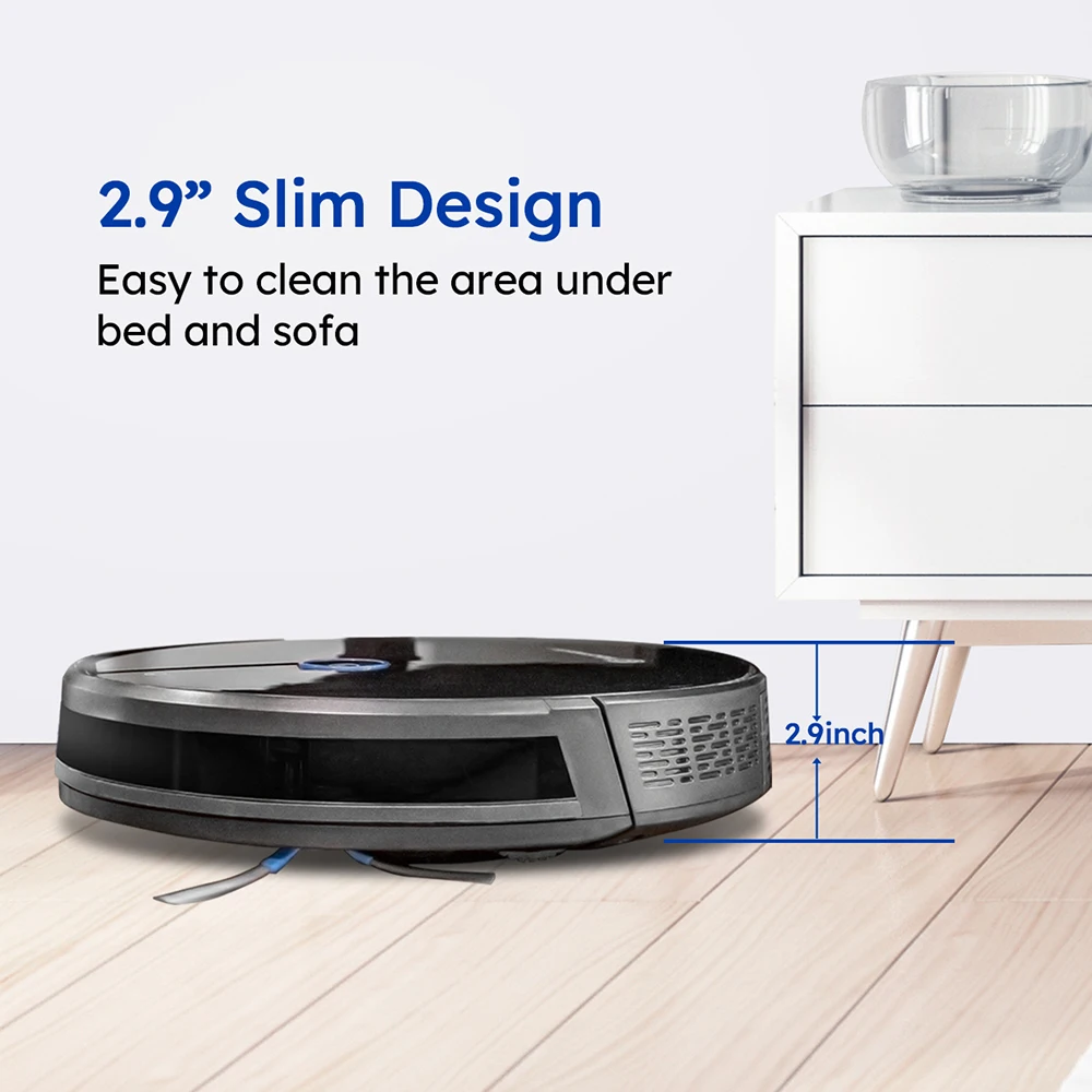 Помимо предоставления вам лучшего качества продукции с отличной производительностью и функциями, мы также хотим, чтобы у вас был продукт с крутым и удивительным дизайном. 2,9 "тонкий дизайн очищает под мебелью, как стол и диван, в то время как большие колеса поднимаются вверх и над небольшими хребтами. Датчики против обрыва избегают падений по ступенькам или спадов. Он пылесосит до 120 мин, удаляет все мелкие или крупные частицы.