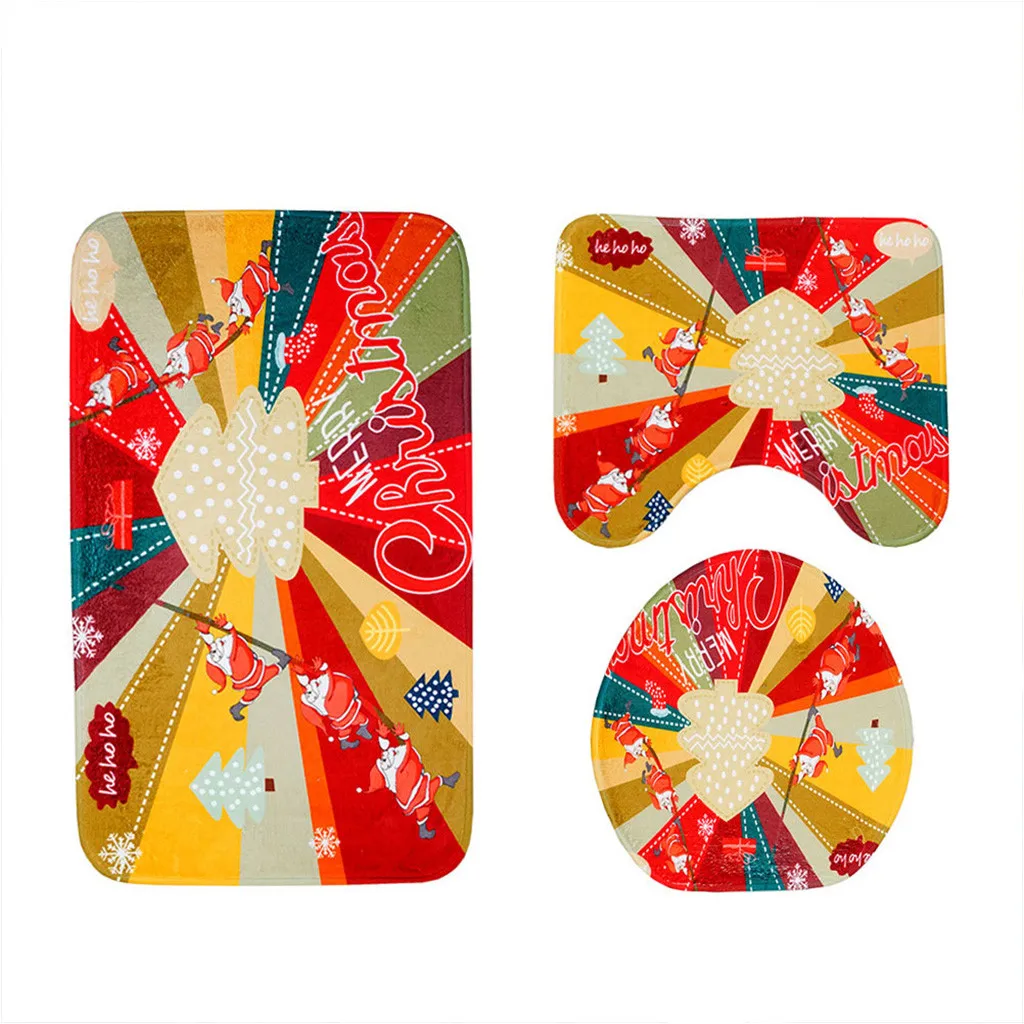 Коврик для ванной комнаты с рождественским принтом, набор ковров из трех предметов