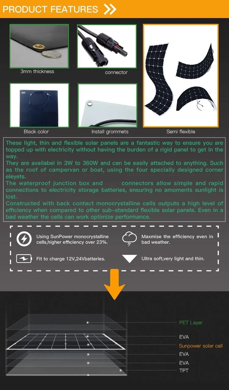 Высокая Конвертация солнечных батарей солнечной энергии гибкие 100 Вт моно солнечные панели из Китая поставщика