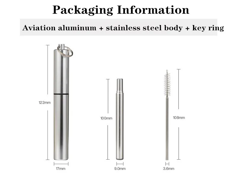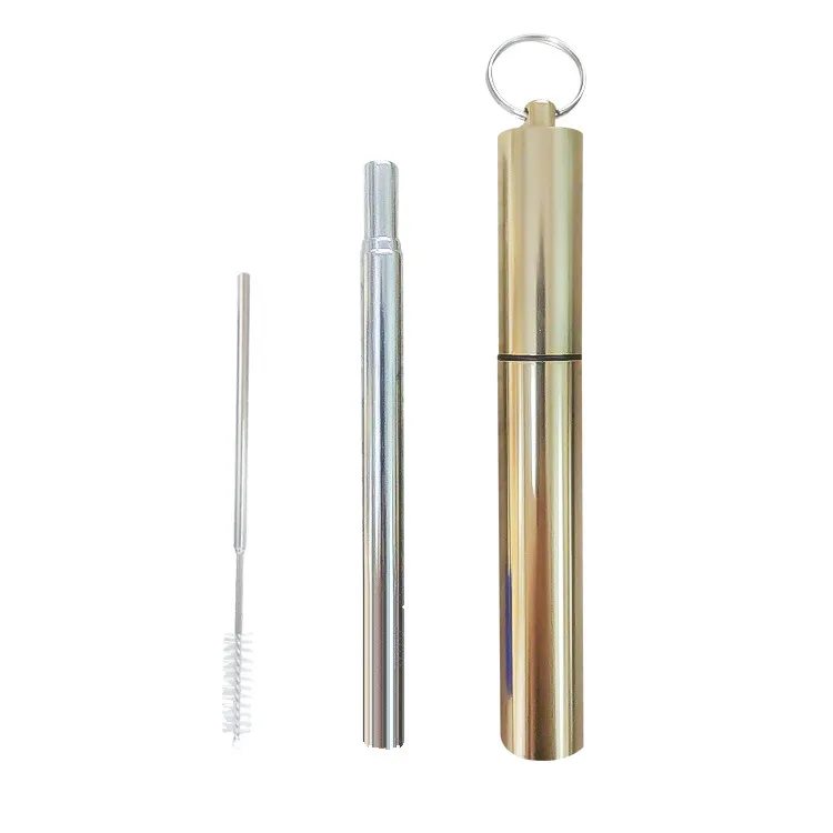 FDA портативная многоразовая Складная соломинки Из Нержавеющей Стали Металлическая телескопическая солома с алюминиевым корпусом и чистящей щеткой