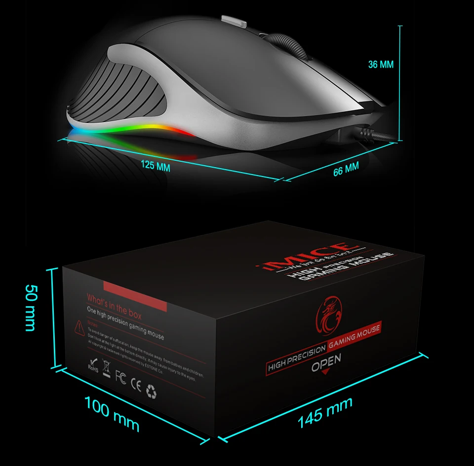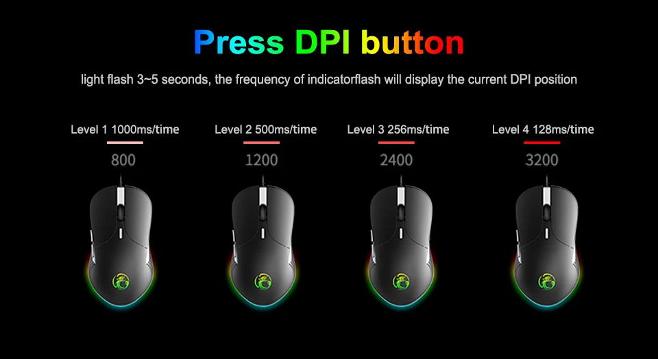 В: Что отличается от обычной версии и профессиональной версии? A: (1) dpi отличается: Нормальная версия: 800/1600/2400/3200 Профессиональная версия: 800/1600/2400/3200/4800/6400 (2) эффект на светильник отличается: Нормальная версия: 7 яркий цветной светильник, задний светильник нельзя регулировать и включать/выключать Профессиональная версия: подсветка регулируется (удерживайте Левую кнопку и нажмите кнопку dpi) и может быть выключена (удерживайте прокрутки и нажмите кнопку dpi) (3) программируемые и пользовательские макросы Обычная версия: нет Профессиональная версия: Да, и, пожалуйста, обратитесь к нам за программным обеспечением
