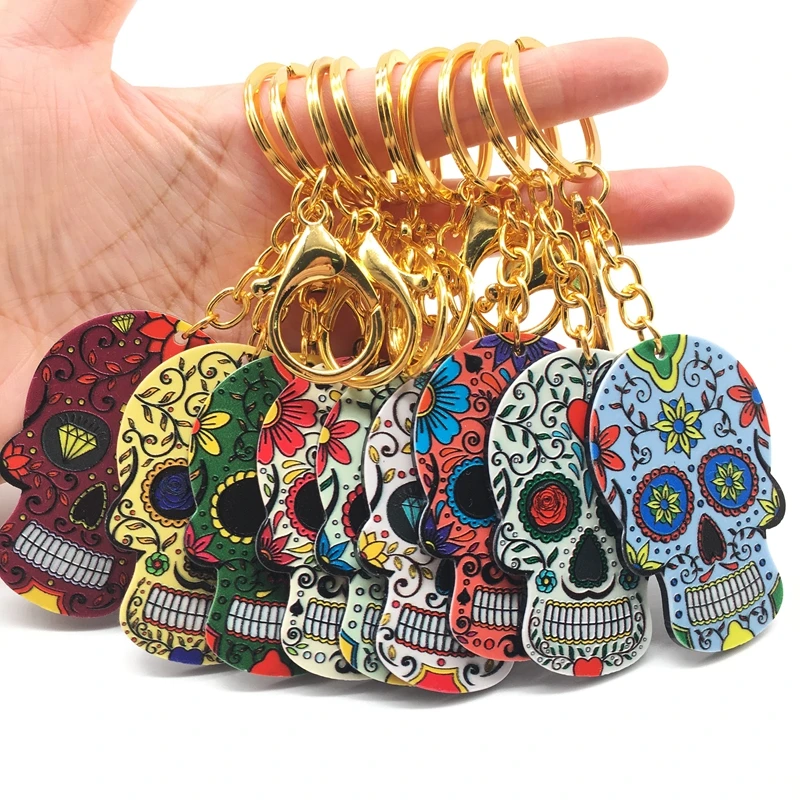 Сахарный череп брелок Calavera Мексиканская Сладкая причудливая цепочка для ключей с черепом брелок для Хэллоуина акриловые бусины в форме черепа Брелоки для ключей