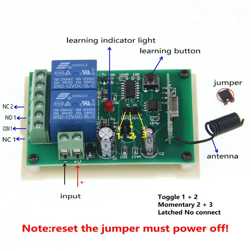 Удерживайте нажатие одной кнопкой, чтобы включить/включить. Ослабьте палец, чтобы остановить/выключить. 1 канальный переключатель (приемник) нужно 1 кнопка дистанционного управления (передатчик)