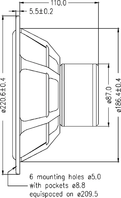 Магнитная система использует кольцевой магнит Alnico V для высокой чувствительности, отличной стабильности и низких искажений. Медная крышка на полюсе, в сочетании с подвешенной звуковой катушкой уменьшает нелинейное искажение до минимального уровня.
