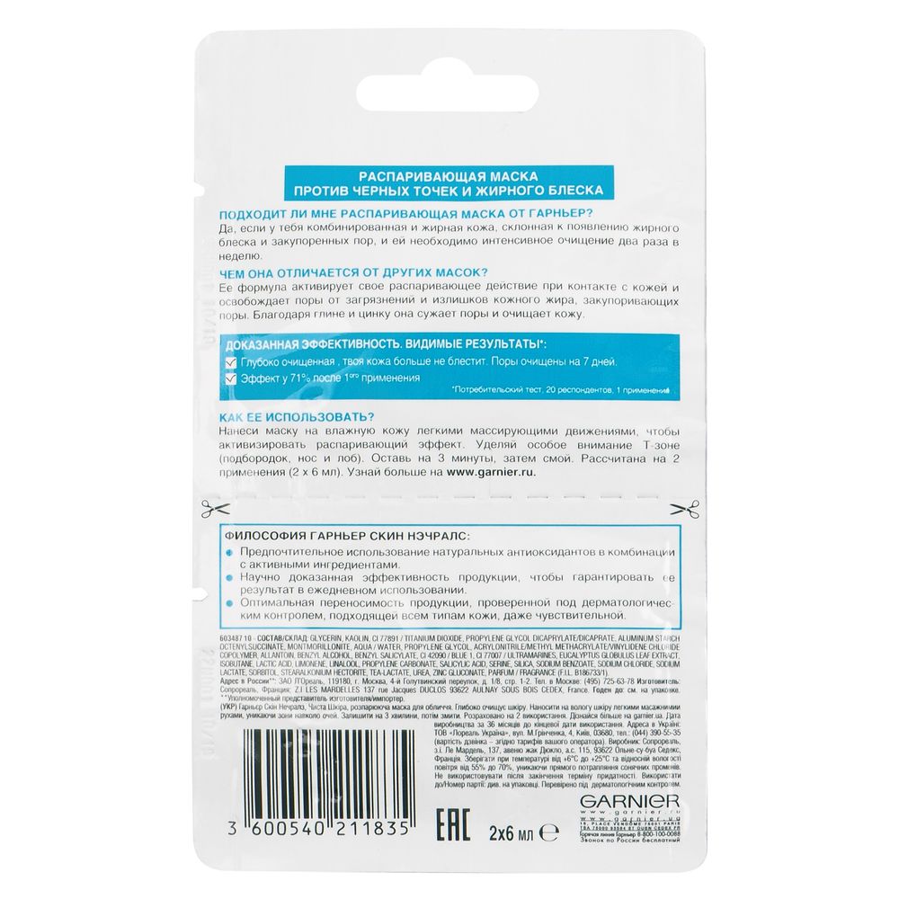 Garnier Распаривающая маска для лица "Чистая кожа" с цинком и салициловой кислотой против черных точек и жирного блеска, 2 х 6 мл