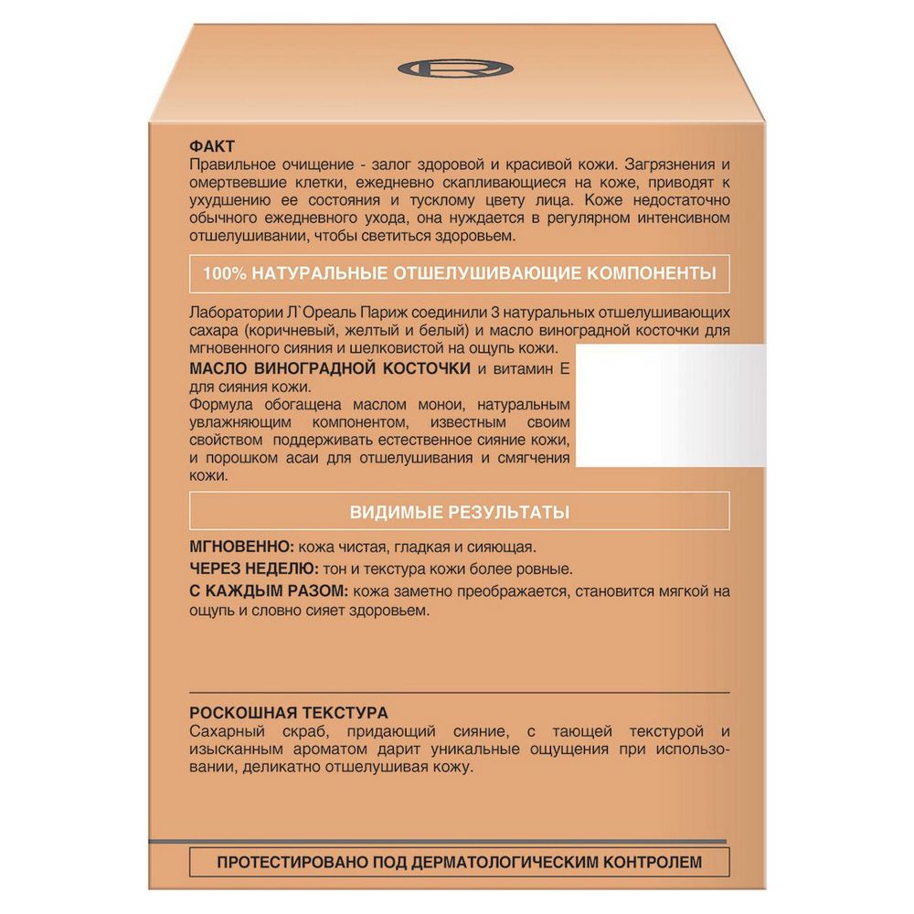 L'Oreal Paris Сахарный скраб для лица, придающий сияние, отшелушивающий, 50 мл, 3 натуральных сахара и Масло винограда