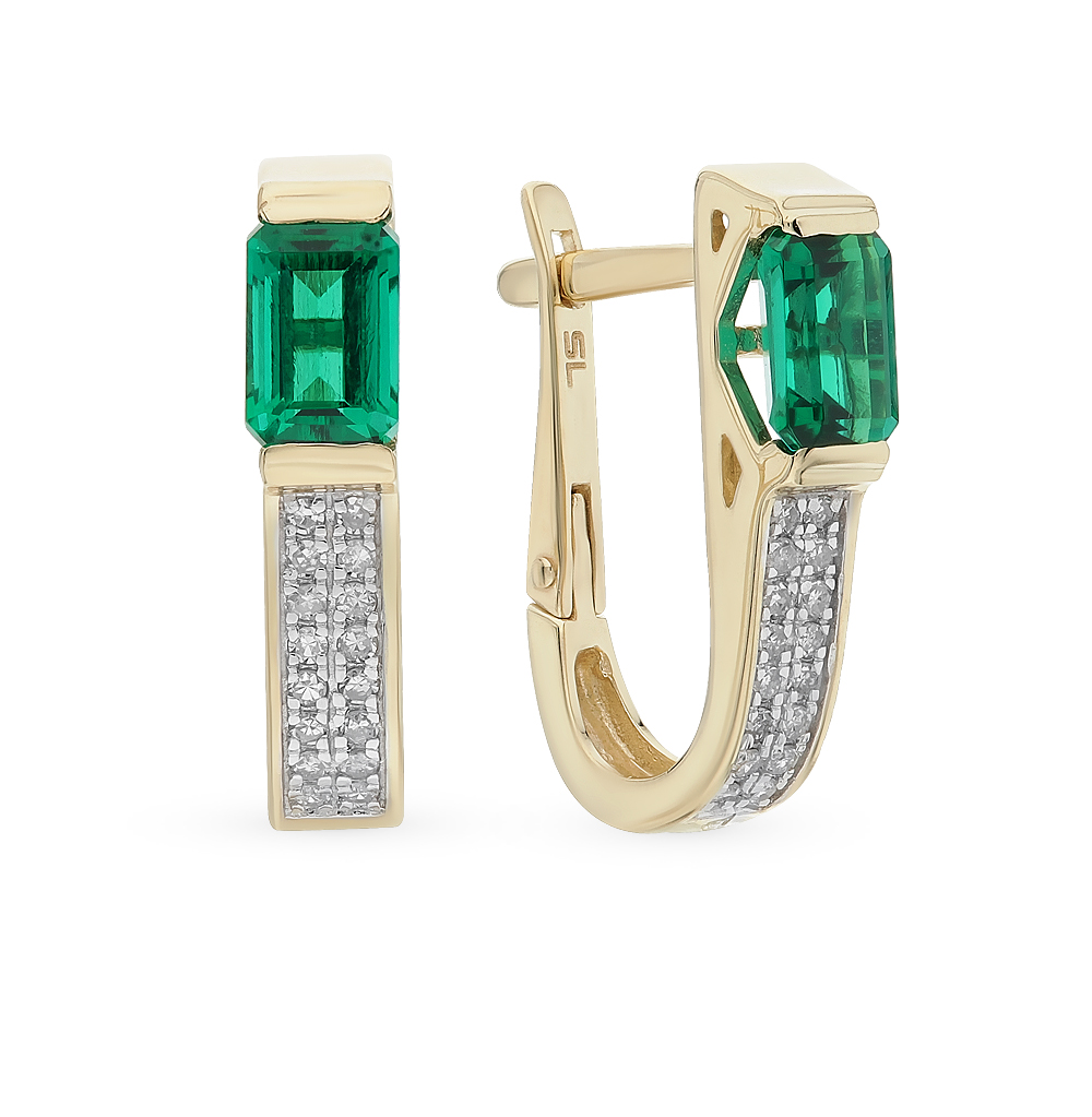 | Описание | Серьги с 32 бриллиантами, 0.15 карат; 2 гидротермальными изумрудами , 1.03 карат; желтое золото 585 пробы. |