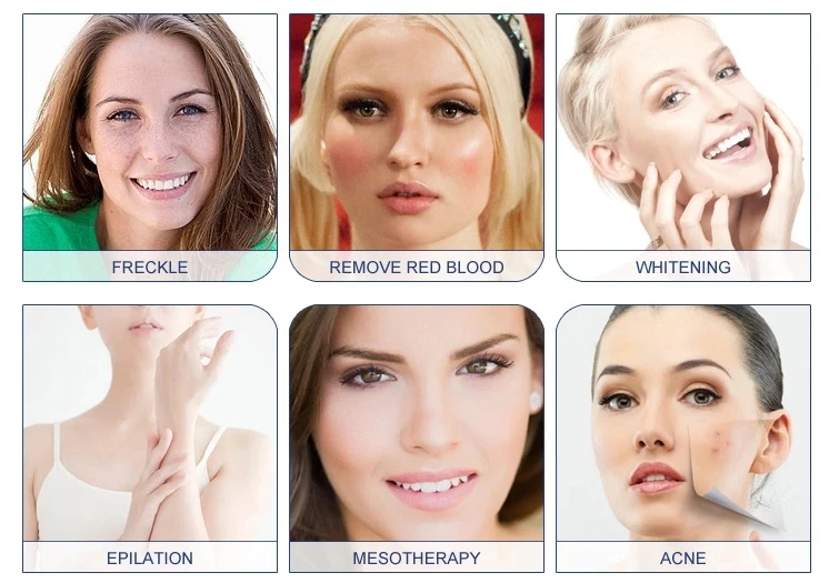 Working Theory: Applying the technology of IPL and Bipolar Radio Frequency, the system acts on the entire corium layer, epidermal layer and subcutaneous tissue. On one hand, IPL destroys pathological pigments by photothermolysis effect, and stimulates the collagen and elastic fiber and gets the effect of tightening and whitening, on the other hand, biopolar RF release about 10 MHZ radio wave, high frequency vibration makes the skin molecule creating heat energy by friction, when the temperature reaches 68℃-72℃,the collagens extend will reproduce and recombine, enhance getting the effect of tightening skin and removing wrinkles.