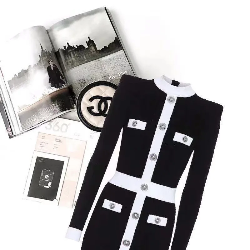 Женское вязаное платье в полоску DIMANAF винтажное свитер черного цвета с длинным