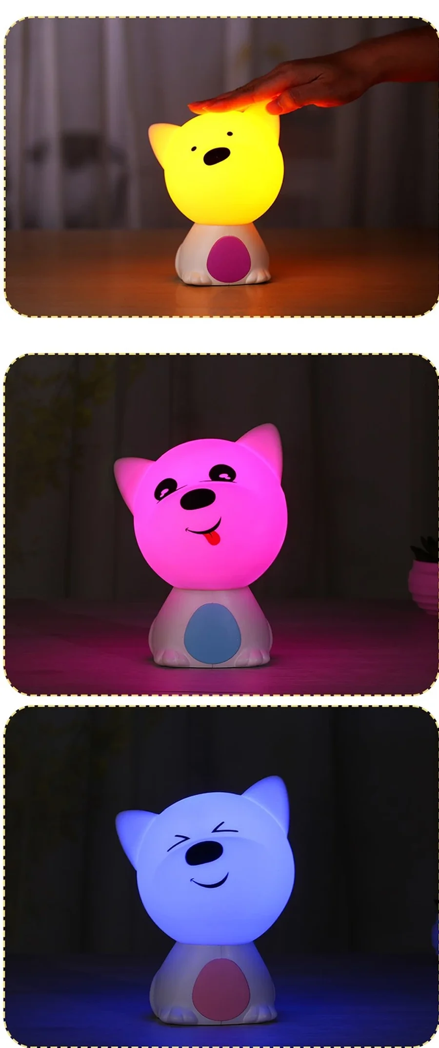 Светодиодный ночник для детей, рождественский подарок, жевательные игрушки, мягкий силиконовый светильник для щенков, 1200 мАч, перезаряжаемый сенсорный ночник для детей