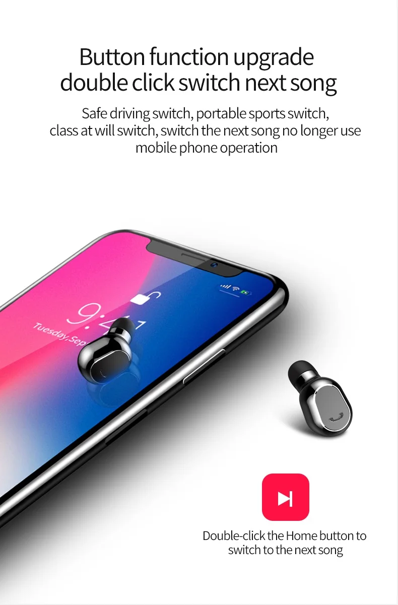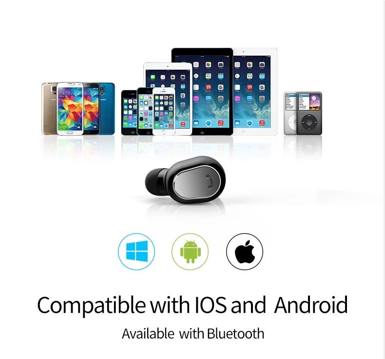 Описание: 1. Чехол для зарядки 2200 мАч, работает как внешний аккумулятор 2. Класс водонепроницаемости IPX5 3. Bluebooth 4,2 4. Автоматическое включение/выключение, автоматическая пара 5. Время в режиме ожидания: 120 ч Гарнитура параметры: Беспроводная версия: V4.2 + EDR Сопротивление: ф8мм 32 Омега Чувствительность микрофона:-42 дБ Беспроводная Частота: 2,4 ГГц Емкость аккумулятора: 50 мА · ч Рабочая температура:-10-50 ℃ Напряжение при зарядке: DC5V Дальность передачи: 10 м Время звучания: 3-4 часа Время зарядки: около 1,5 часов Время работы в режиме ожидания: 120 часов Вес: 4g Чехол для зарядки: 2200 мА · ч Посылка включает в себя: 1 х мини Bluetooth наушники 1 х зарядный чехол 1 x usb-кабель для зарядки Руководство пользователя (1 шт.) 2 х бесплатная дополнительная Ушная крышка