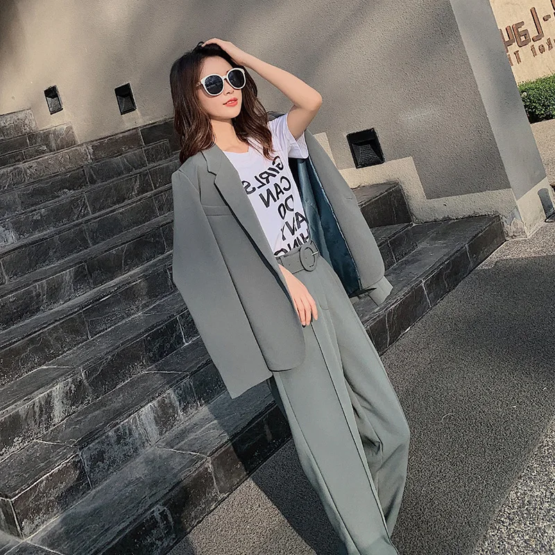 Women's suit 2019 autumn and winter new casual fashion temperament loose wild color single buckle two women's sets