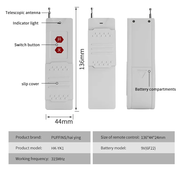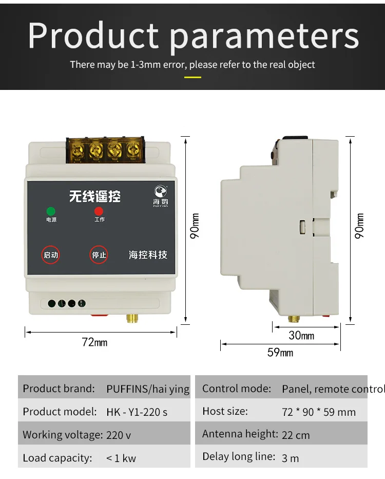 1. Рабочее напряжение может быть выбрано от 220 В/380 В. 2 включает в себя: 1 передатчик (без батареи) Приемник-1 шт.) 1 антенна 3. Сборка продукта закроется, когда он будет открыт. 4. Резистивная нагрузка: 4000 Вт Индуктивная нагрузка: 800 Вт 5. Расстояние дистанционного управления составляет 1000 или 3000. Удельное расстояние дистанционного управления-чтобы увидеть среду сцены.