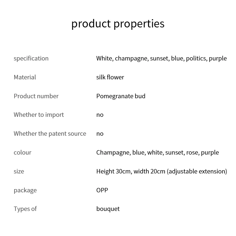 Легко моется, легко сочетается с другими цветами. Великолепный цвет цветка, шикарная форма. Можно использовать в течение длительного времени, всегда цветет. Подходит для вечерние, свадебные, художественные залы, офис, магазин, дом, сад и так далее. Легко моется, легко сочетать с другой цвета. Красивое платье с цветочным узором цвет, шикарные формы. Может использоваться в течение длительного времени, всегда цветка. Отличный подарок для друга, который аллергия на пыльцу.