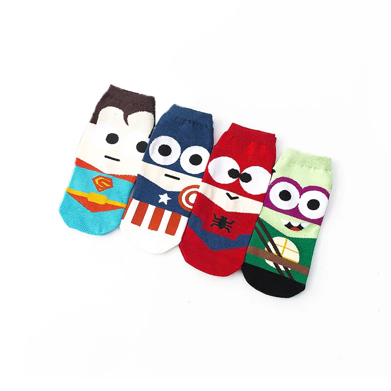 36-43, летние носки в стиле Харадзюку, хип-хоп, ниндзя, Бэтмен Супермен Спайдермен, Капитан Америка, Мстители, короткие носки, новинка, Sokken D129