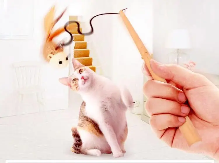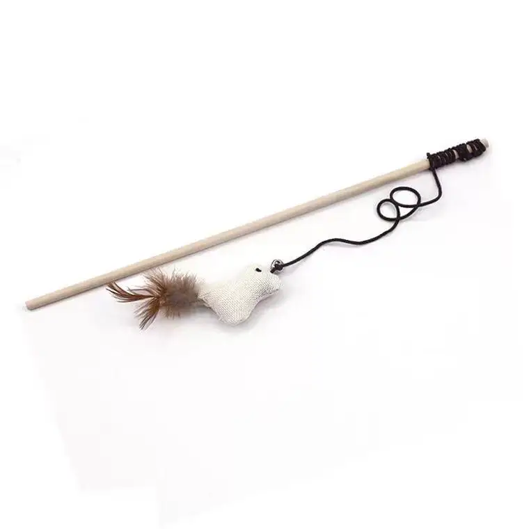 Текстура материала: палка изготовлена из дерева, а мышь изготовлена из льна, шерсти и перьев.