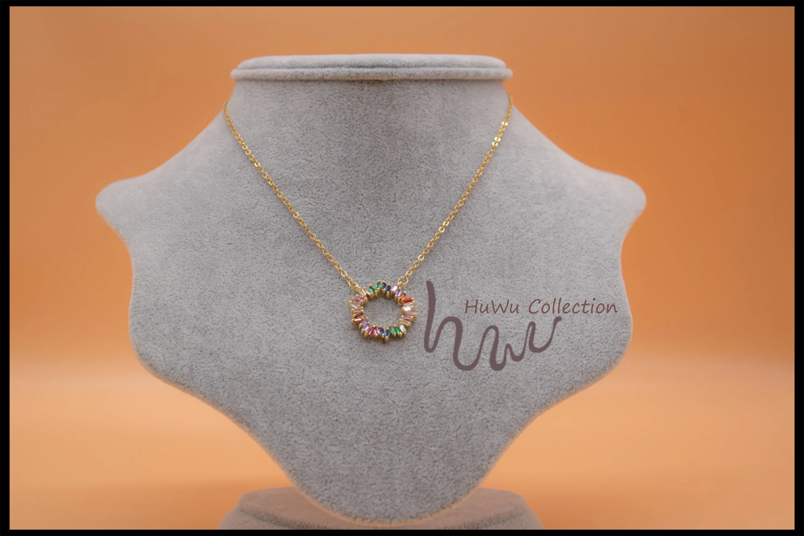Разноцветное ожерелье с подвеской из циркона радуги. Все Циркон вручную в собранном виде, высокое качество медный покрытый 18 К золото. Hi-SAT Zircon создает блеск, который не является выразительным, добавляя кристальный блеск к любой одежде, которую вы носите. Прекрасный подарок для женщин.