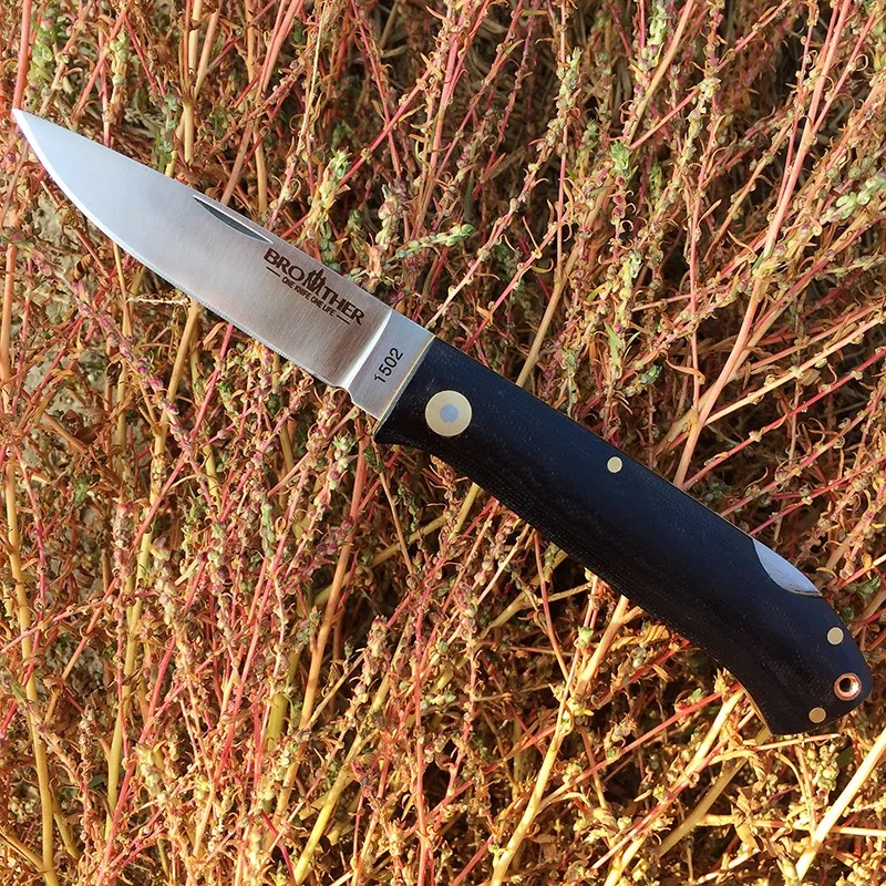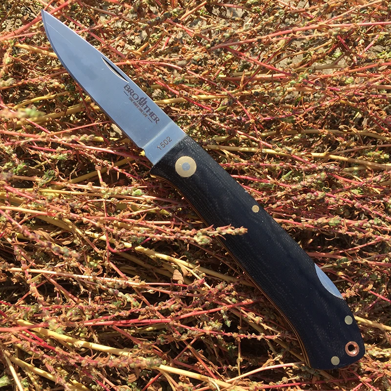 Ножи Технические характеристики: Бренд: brother Код товара: 1502 Тип внешний вид Общая длина: 188 мм (7,40 '') Ножи Вес: 105g (3,7 oz) Лезвие: 440C (58-60hrc) Длина лезвия: 80,5 мм (3,169 '') Режущая кромка: 70,5 мм (2,776 '') Лезвие Толщина: 3,0 мм (0,118 '') Ширина лезвия: 19,4 мм (0,764 '') Поверхность: плоская шлифовка. Сатин-отделка Ручка: G10 Длина ручки: 108 мм (4,252 '') Ширина ручки: 23 мм (0,906 '') Ручка Толщина: 11,7 мм (4,606) Поверхность: CNC и ручной работы закругленные Нанесения гелевой подводки: латунь Мытьё: Медь