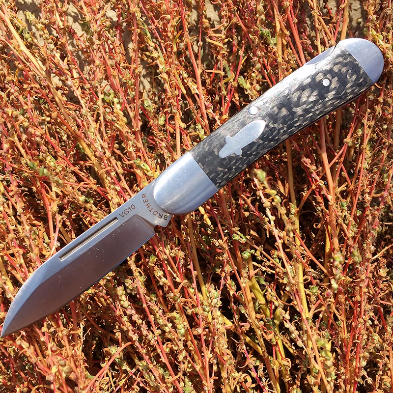 Ножи Технические характеристики: Бренд: brother Код товара: 1503 (ковбойская) Механизм: задняя крышка Общая длина: 159 мм (6,26 ") Вес ножа: 75 г (2,645 унций) Лезвие: VG10 (60-61hrc) Длина лезвия: 67,5 мм (2,657 ") Режущая кромка: 61 мм (2,402 ") Лезвие Толщина: 3,0 мм (0,118 ") Лезвие Ширина: 15 мм (0,59 ") Поверхность: плоская шлифовка. Сатин-отделка Ручка: углеродное волокно Длина ручки: 91 мм (3,583 ") Ширина ручки: 20 мм (0,787 ") Ручка Толщина: 11,5 мм (0,453 ") Поверхность: CNC и ручной работы закругленные Подкладка: Сталь Нанесения гелевой подводки: Сталь Мытьё: Медь