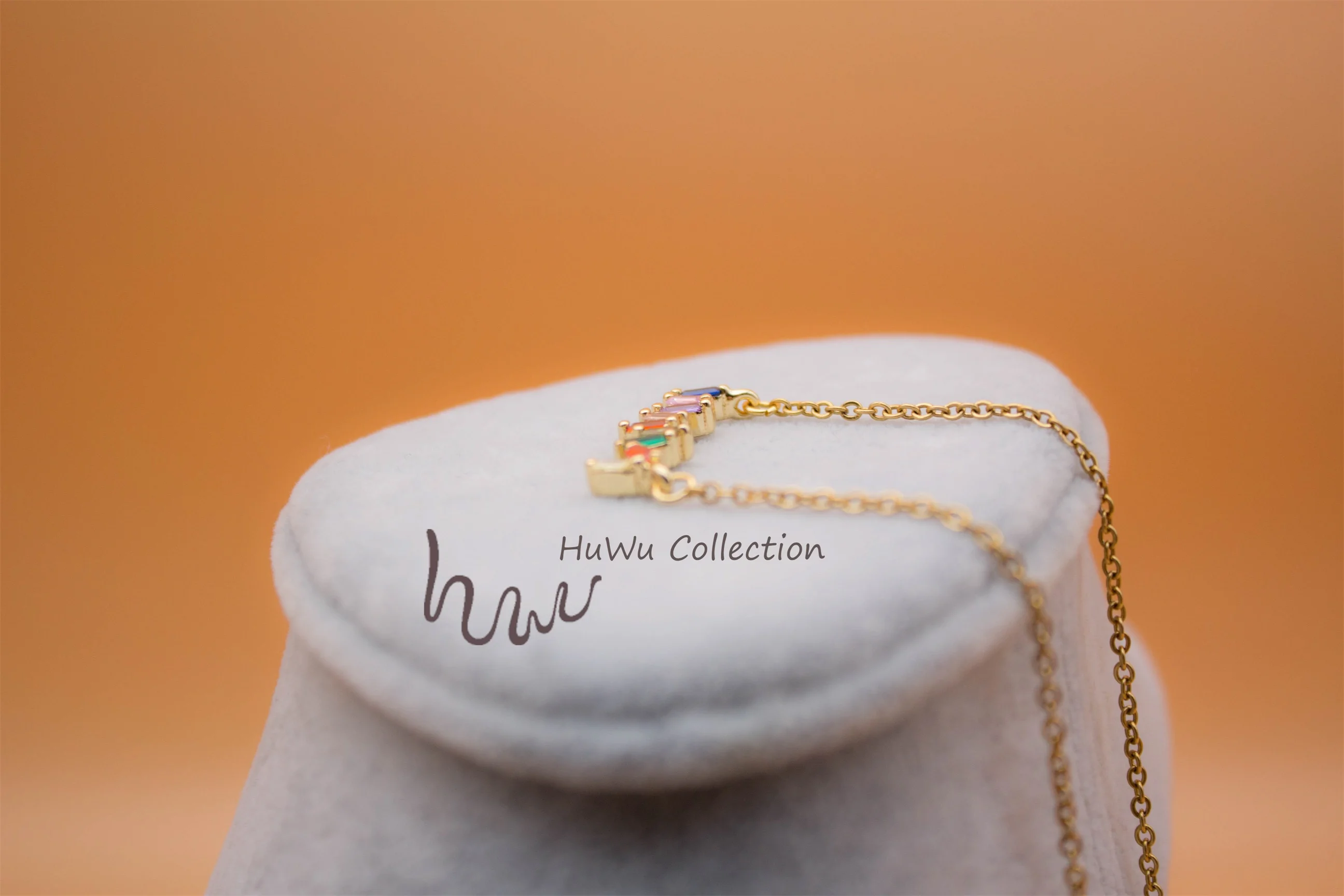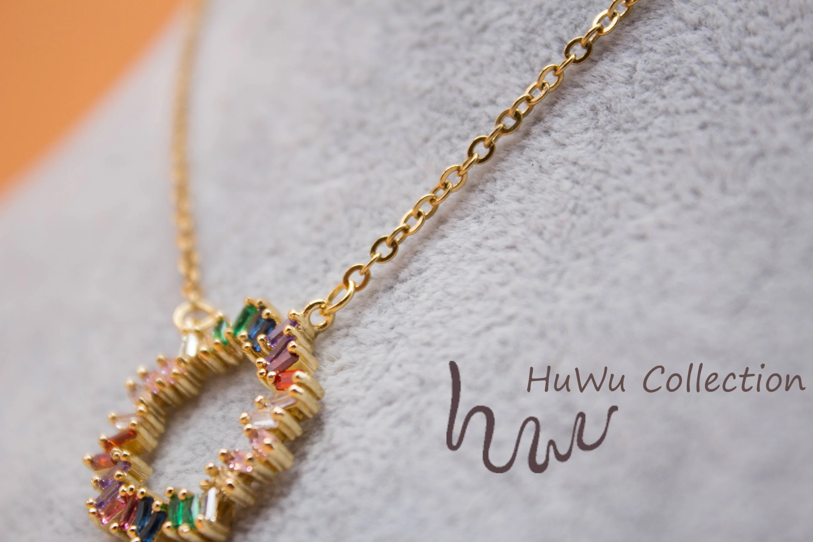 Разноцветный циркон случайно собран вручную, что делает каждый кусок ожерелья уникальным. Hi-SAT Циркон установлен на 18k покрытой меди, отличное качество, что цвет не будет выцветать быстро.