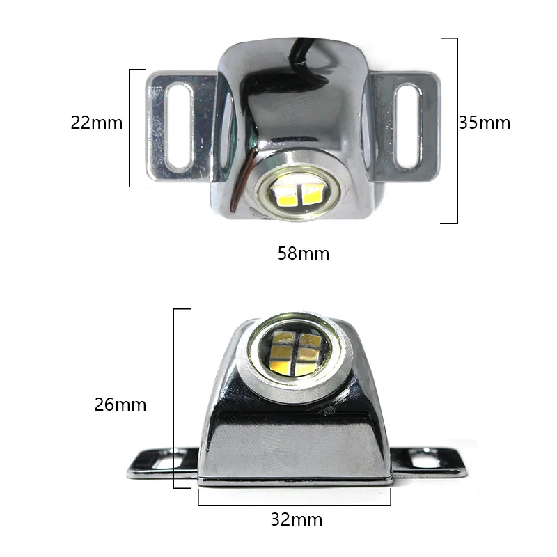 Описание изделия: Цвет: черный, серебристый применимые модели: универсальное значение люменов: около 650 лм одна мощность: 5 Вт Размеры: Длина: 33 мм, ширина: 36 мм, высота: 28 мм, шаг: 41 мм, общая длина: 59 мм Вес: 30 г Название: Автомобильный светодиодный Электрический светильник заднего хода напряжение: DC12V ток: 0.4A Материал: цинковый сплав срок службы: >50000 часов Светильник Цвет: белый светильник прожектор светильник широкоугольный объектив, угол освещения и поле обзора превышают 165 °, поле зрения шире, конструкция объектива высокой яркости не является астигматичной, и эффект повышения яркости хорош. Упаковка: 1 светильник заднего хода