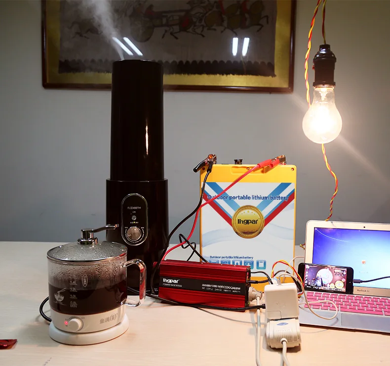 Розетки переменного тока и usb-порты. 1 универсальная розетка переменного тока и 1 usb-порт для зарядки, отлично подходит для зарядки ноутбука, dvd-плеера, автомобильного холодильника, автомобильного пылесоса, игровой консоли, телевизора, dvd-плееров, освещения, iPad, смартфона, и других электронных устройств.