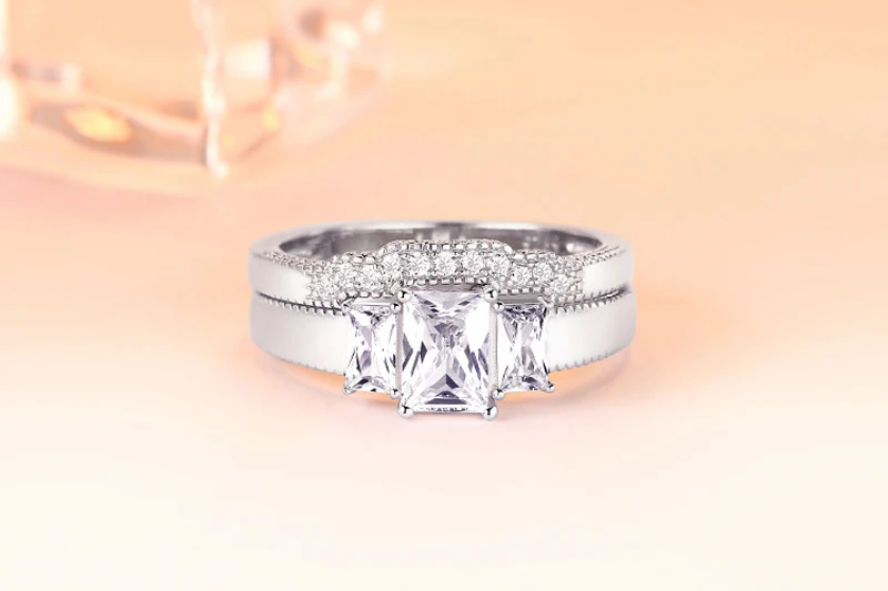 Тонкая или модная: тонкая Драгоценный камень: белый фианит Четкость камня: AAAAA Цвет камня: белый Метод Создания камня: создан Резка камня: очень хорошо Тип металла: Стерлинговое Серебро 925 пробы Ширина кольца: 2,8 мм Общий вес: около 5,21 г Повод: Свадьба/помолвка/Вечеринка/Юбилей/на каждый день