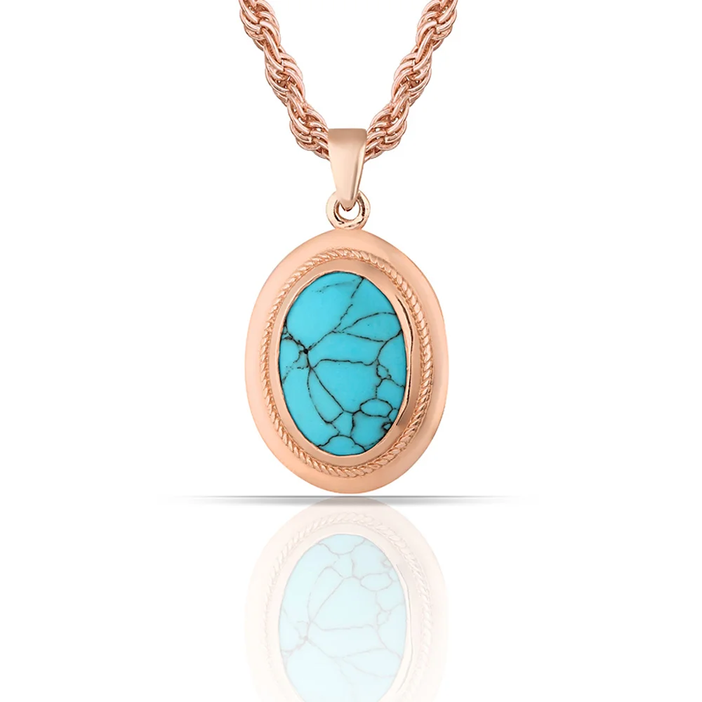 Ожерелье из чистого серебра 925 пробы цвета розового золота поставляется с длинной цепочкой 45 см и бирюзовым камнем. Родий ресинфорцемент предотвращает потускнение серебра. Это ожерелье также анти-алергическое