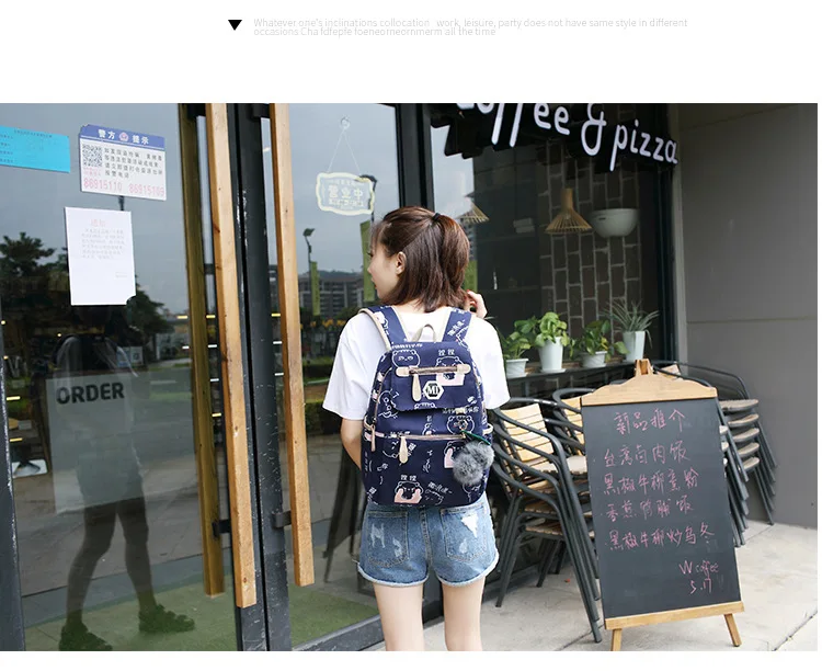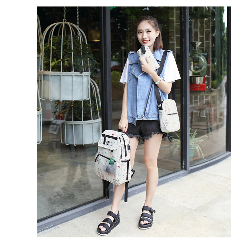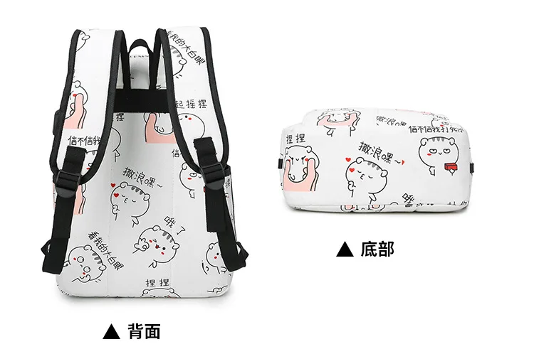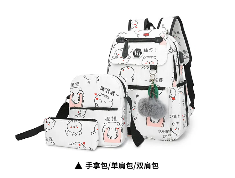 3 шт./компл. Для женщин мультфильм печати рюкзак комплект школьные сумки студенческие книжные сумки для девочек путешествия рюкзак, модные сумки на плечо
