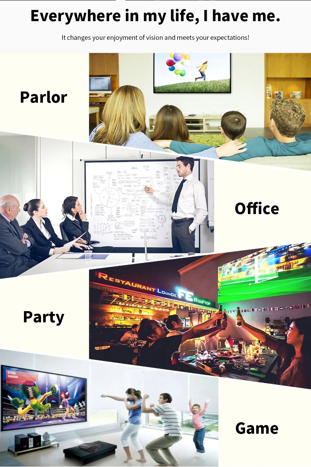 Модель: YG-600/YG-610 Дисплей Тип: ЖК-дисплей Исходное разрешение: 1280*768 Поддержка Разрешение: 1920x1080 Яркость: 4000 люмен Проекционное расстояние: 1,5-4,5 м Размер изображения: 80-150 дюймов Соотношение сторон: 16:9 Интерфейс: HDMI * 2/USB/VGA/SD/AV Сертификат: CE, ROHS, FCC Лампы: светодиодный светильник Bluetooth: неподдержки Форматы изображений: Bmp, png, jpeg Форматы Видео: 3GP(H.263,MPEG 4)/AVI(XVID,DIVX,H.264)/MKV(XVID,H.264,DIVX)/FLV(FLV)/MOV(H.234)/ MP4(MPEG4,AVC)/MPG(MPEG1)/VOB (MPEG2)/MPG(MPG-PS )/RMVB(RV40)/RM Аудио форматы: Mp3, wma, ogg, aac, flac, ape, wav Потребляемая мощность: 100-240 В 50/60 Гц Встроенный динамик: Да DVB-T поддерживается: нет Внешняя Подпись поддерживается: нет 3D: нет Высота штатива: не входит в комплект Вес продукта: 2,5 кг Посылка Вес: 3,3 кг Размер хоста (Ш x В): 31,07x23,93x11,76 см Посылка содержит: YG600/YG610 проектор хост + шнур питания + пульт дистанционного управления + три в одном AV кабель + руководство на английском языке