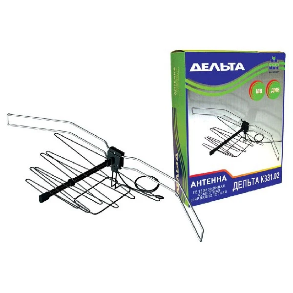 Комнатная телевизионная антенна индивидуального пользования quot;Дельта К331.02quot; предназначена для приёма телевизионных программ, транслируемых во всех диапазонах частот на любом телевизионном вещательном канале.