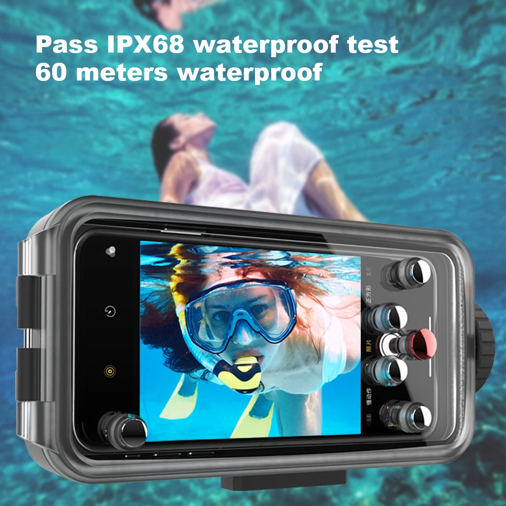 Product Name:Waterproof Phone Case Waterproof Depth: 60m(195ft) Waterproof Element: O-ring Seal Gasket Color: Black/White Suitable: For Huawei P20 P30 Pro/Mate 20 30 Pro Operation Temperature: 0-40 Degree Weight: 400g Package Included: 1PC Waterproof Phone Case 1PC EVA Bag 1PC HD Lens