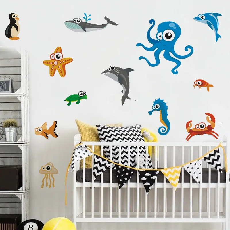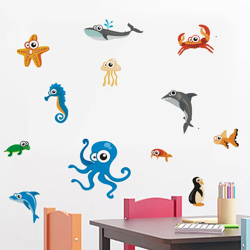 Морские животные наклейки на стену Акула КИТ Осьминог DIY настенные наклейки детская комната Детский сад спальня обои настенное украшение