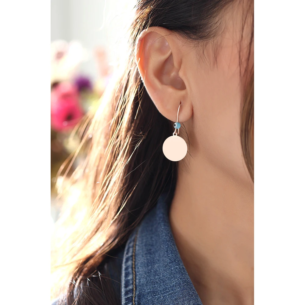-1 год гарантии. -Все металлические детали 925 k чистого серебра. -Покрытие с ионным напылением из розового золота -Серебро не тускнеет. -Родий усиленный. -Антиаллергенный. -Вы можете ухаживать за своим изделием с помощью мягкой и сухой хлопковой ткани. -Размер серьги: 3 см -Диаметр круга: 1 см
