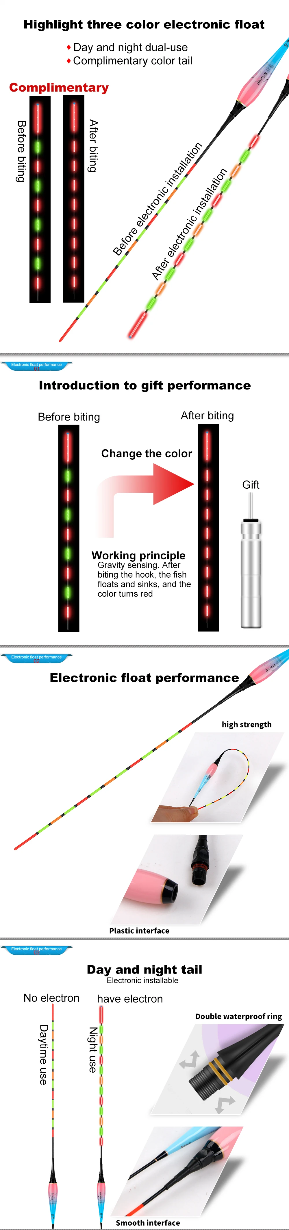 Наименование: гравитационный индукционный поплавок Особенности: оснащен умным чипом с функцией гравитационного зондирования Пункт продажи 1: двойной плавающий хвост может быть заменен днем и ночью Пункт продажи 2: Выдайте 10 батарей Посылка: 1 шт. Поплавок + Бесплатный световой дрейф + 10 шт. батареи Транспортировка: принять супер сильные ABS пластиковые жесткие трубки для обеспечения безопасной транспортировки продуктов