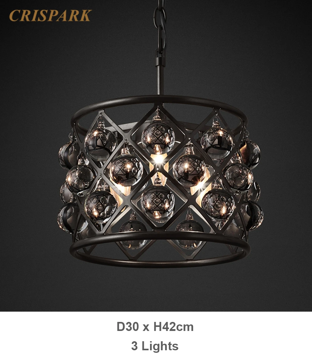 【Brand】: crispark 【Iterm носок]: Винтаж 【Материал 】: металл + кристалл K9 [Размер]: # D30 x H42cm 3 огни # D53 x H43cm 4-мя лампочками # D70 x H53cm 8 Огни # D80 x H46cm 8 Огни # D53 x H51cm 6 огни 【Цвет】: # Черная отделка из металла 【Цвет излучаемого света: теплый белый 3000K, белый светильник 6000K 【Время производства 】: около 12-16 дней