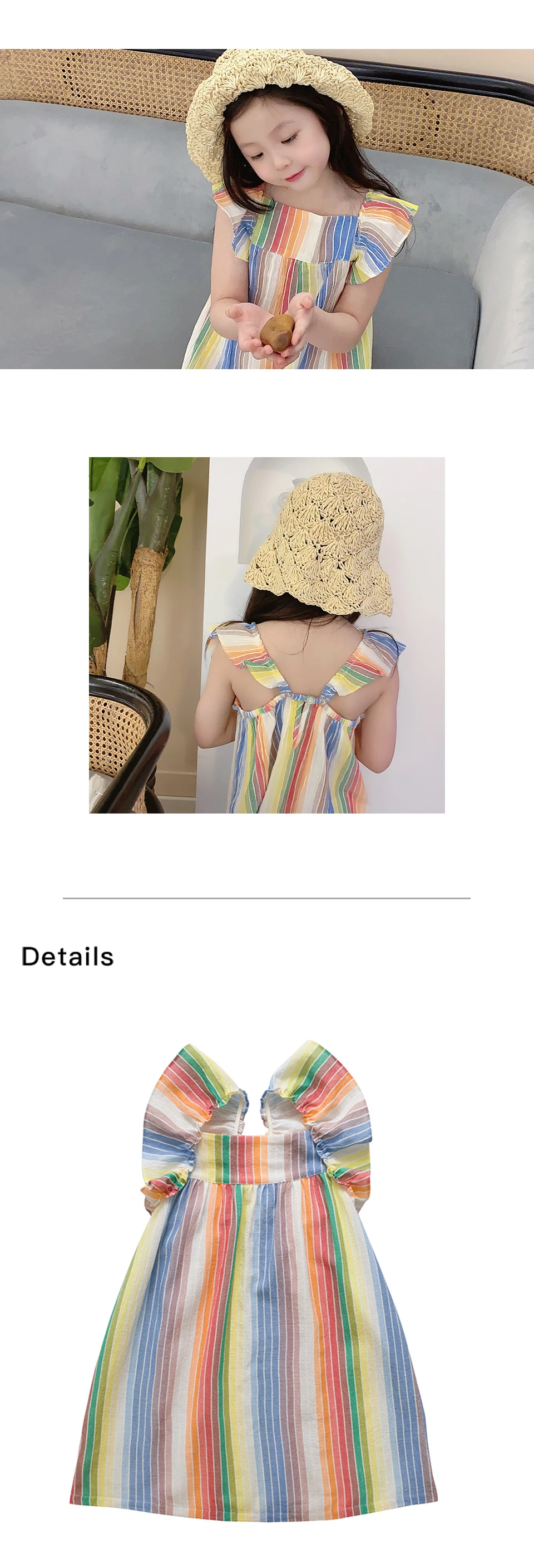 Красочный узор в полоску очень ослепительный летом, а плечи украшены оборками.