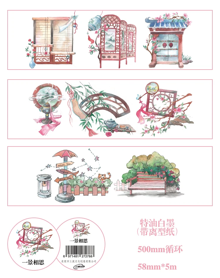Размер: 58 мм * 5 м Петля: 500 мм Материал: Васи-бумага Упаковка: 1 рулон/Сумка Использование: фантастический дизайн для ваших приглашений/карт/конвертов/журналов