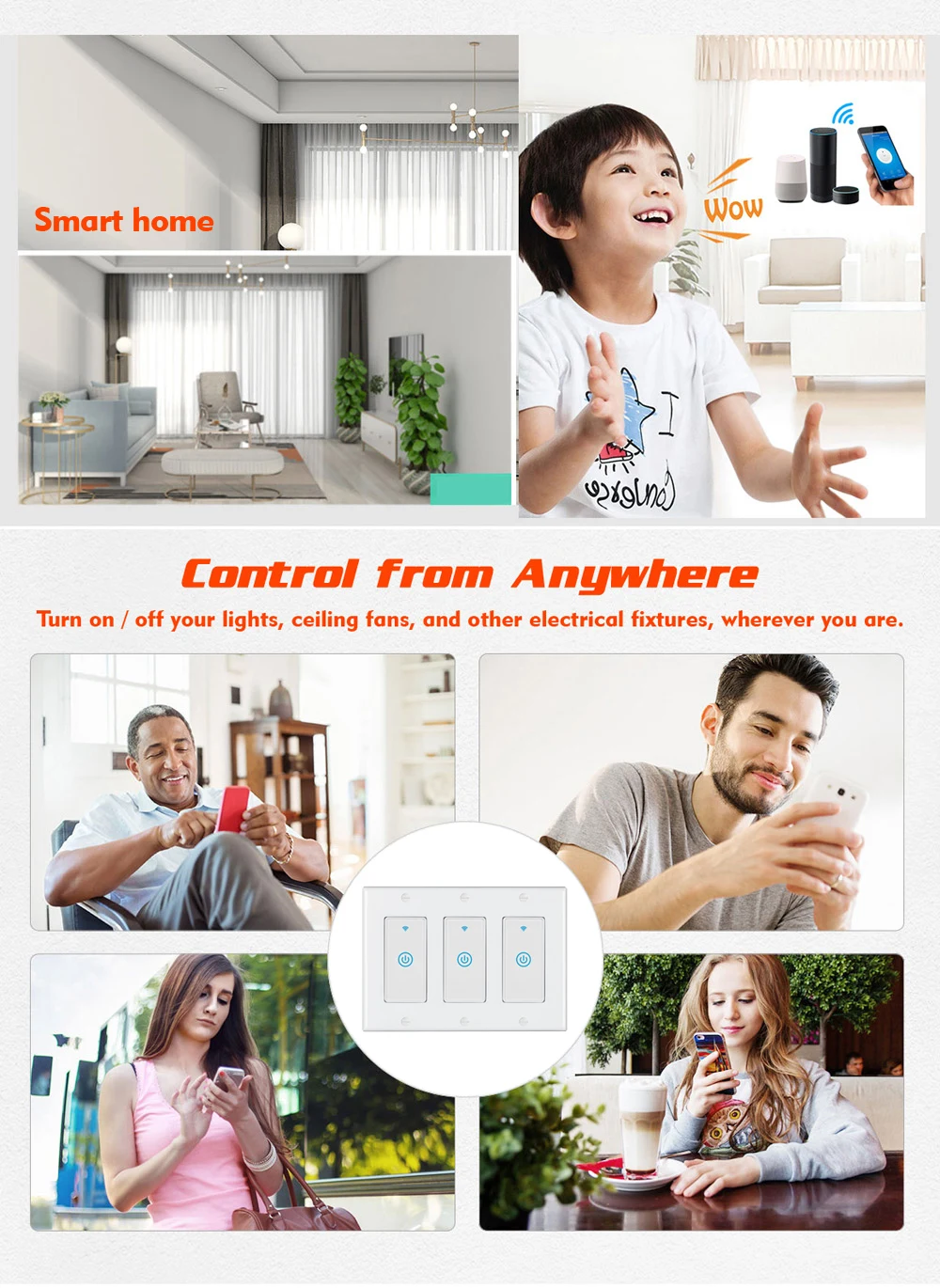 Управление из любого места: Включите или выключите электронику с помощью смартфона с помощью приложения Tuya (Совместимо с Android и iOS) Голосовое управление: работает с Alexa, Google Assistant поддерживает устройства для бесконтактного общения Планирование: Используйте расписания, чтобы настроить смарт-переключатель для автоматического включения и выключения во время дома или вдали Светодиодная подсветка: мягкий красный/зеленый индикатор четко показывает включение/выключение и помогает вам легко находить положение переключателя в темноте, но при включении не влияет на сон, красный свет; При выключении, синий свет .. Безопасность: огнестойкий материал и не новая технология электрической дуги, что гарантирует безопасную и надежную работу. Перезагрузка и перегрев поддерживаются для вашей безопасности. Примечание: нейтральный провод опционально, можно выбрать нейтральный провод и живой провод, или выбрать только живой провод