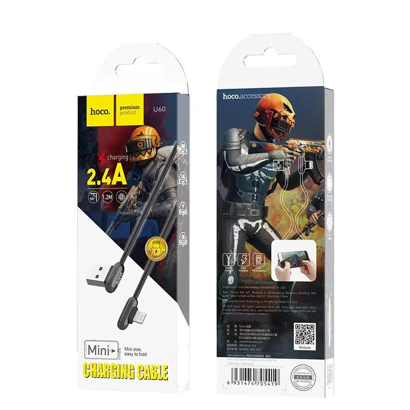 Hoco U60は、お手入れが簡単です。 Металлические коннекторы usb и 雷8ピン расположены под углом 90 градусов 、 что обеспечивает максимальное удобство и безупречные эксплуатационные данные проводящим материалом служат 120-жильные медные проволоки。 Специальное покрытие защищает его от переломов 、 повреждений и увеличивает срок службы。2.4aに設定されています。