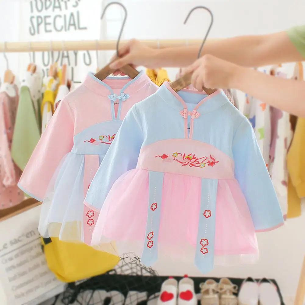 Китайское классическое Тюлевое платье принцессы с длинными рукавами и цветочным рисунком для новорожденных девочек