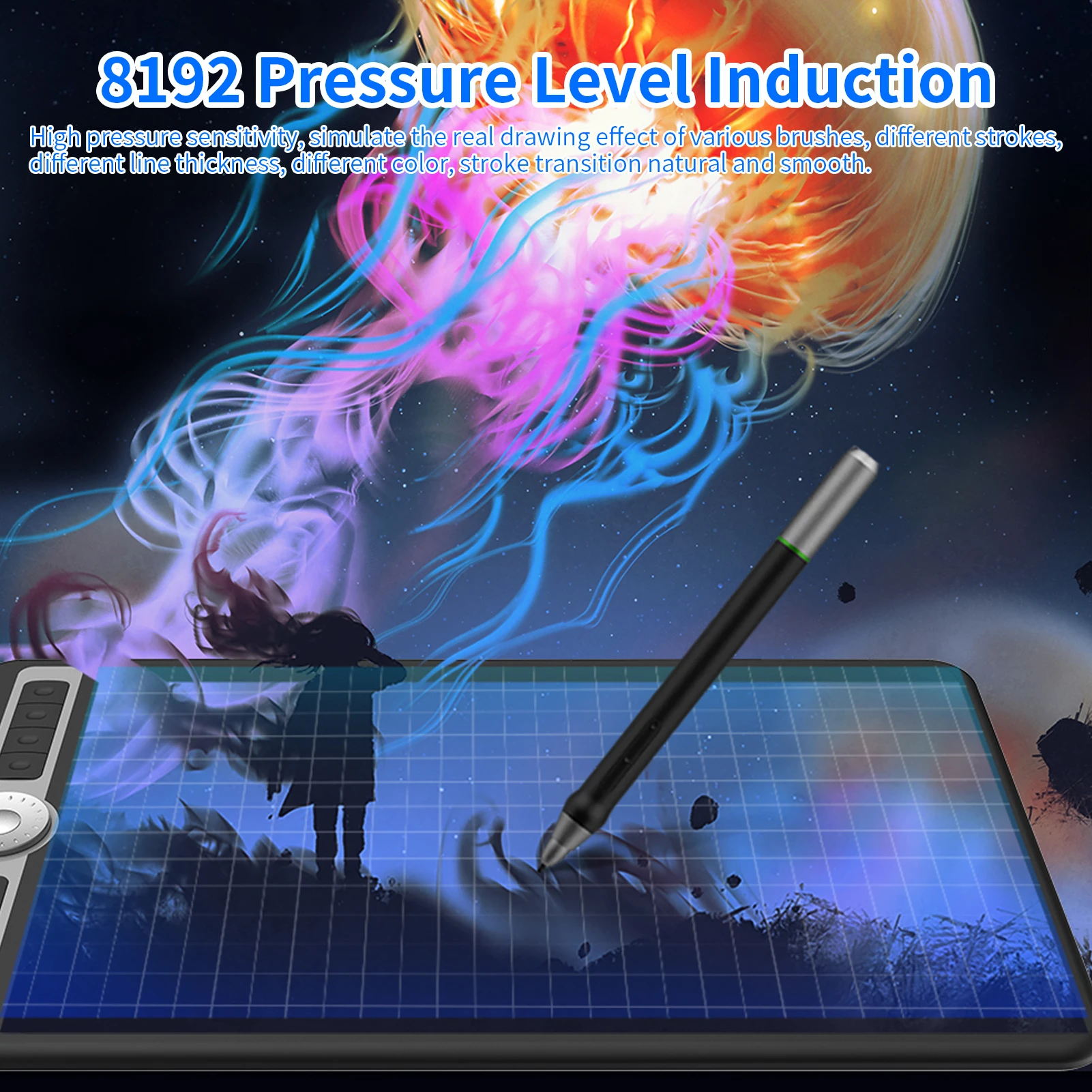 【 8192 индукция уровня давления:8192 чувствительность к давлению на уровне ручки, в 4 раза чувствительна, чем 2048, делает линии рисования более деликатными, более подробными, дает вам гладкое и естественное ощущение при рисовании.