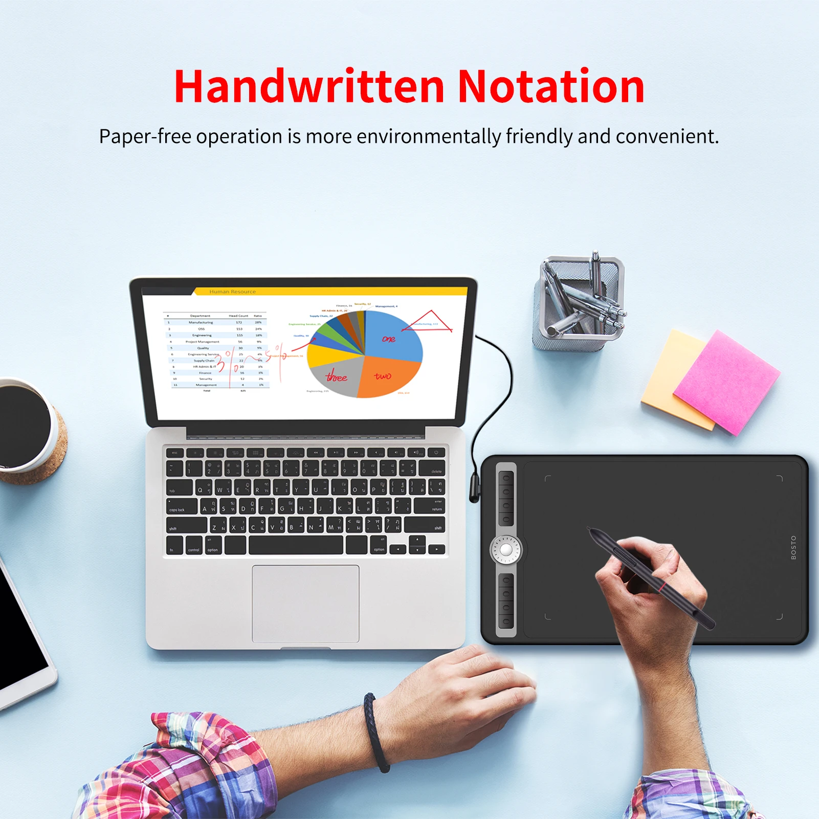 【 Батарея-Бесплатная Pen】:Принимает ручку без батареи, вам не нужно заряжать ее, эргономичный дизайн, который может эффективно уменьшить усталость, вызванную длительным удерживанием ручки. С 2 пользовательскими функциональными кнопками для удобства рисования.
