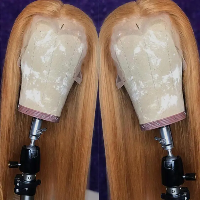 Медовый блонд, парик из человеческих волос на фронте, бразильские Прямые предварительно выщипывающиеся #30 цветные 13X1 парик с кружевной частью, парик для волос Remy Pinshair 150