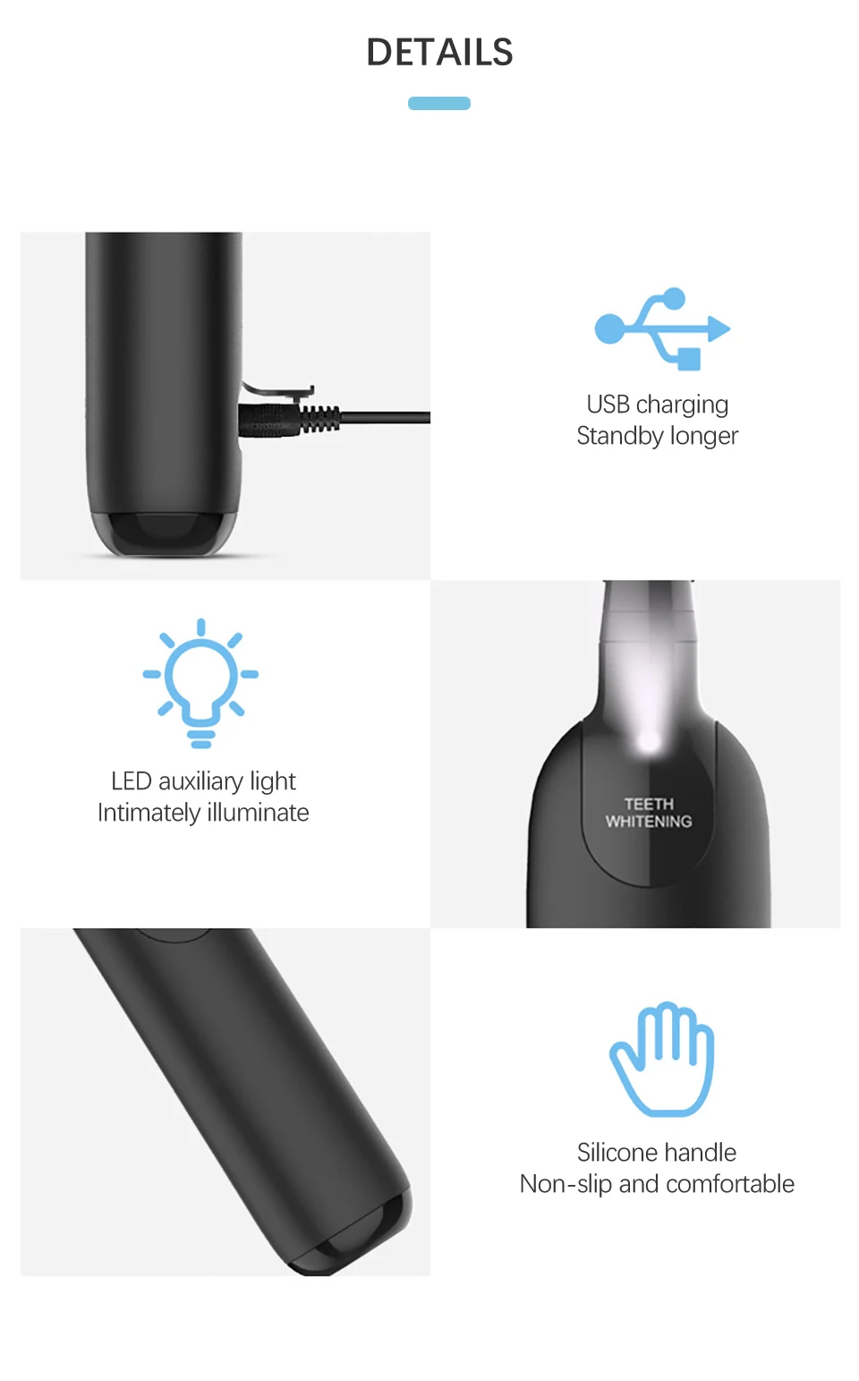 Безопасность: наконечник из нержавеющей стали, водонепроницаемый корпус Удобно: Силиконовая ручка, удобно держать |