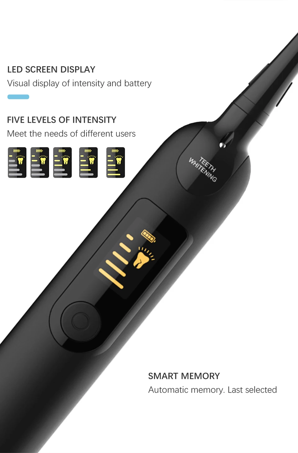 Светодиодный экран, визуальный дисплей интенсивности и заряда батареи, пять уровней интенсивности, удовлетворить потребности различных пользователей |