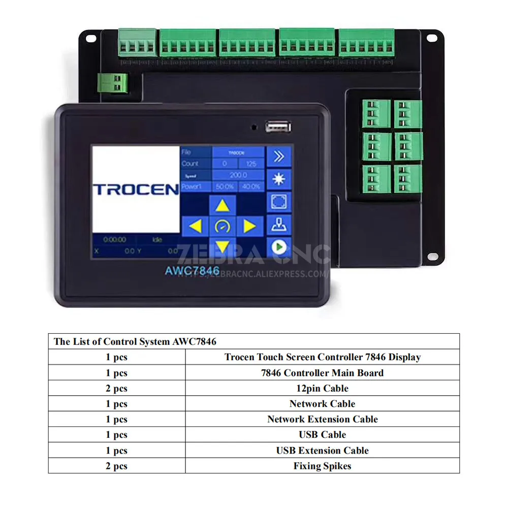 AWC7846 является улучшенной версией AWC7824. На основе наследования всех функций AWC7824, он также имеет функции 6-осевого, 6-головочного лазерного Независимого управления, 6-головочного взаимного перемещения и автоматической подачи