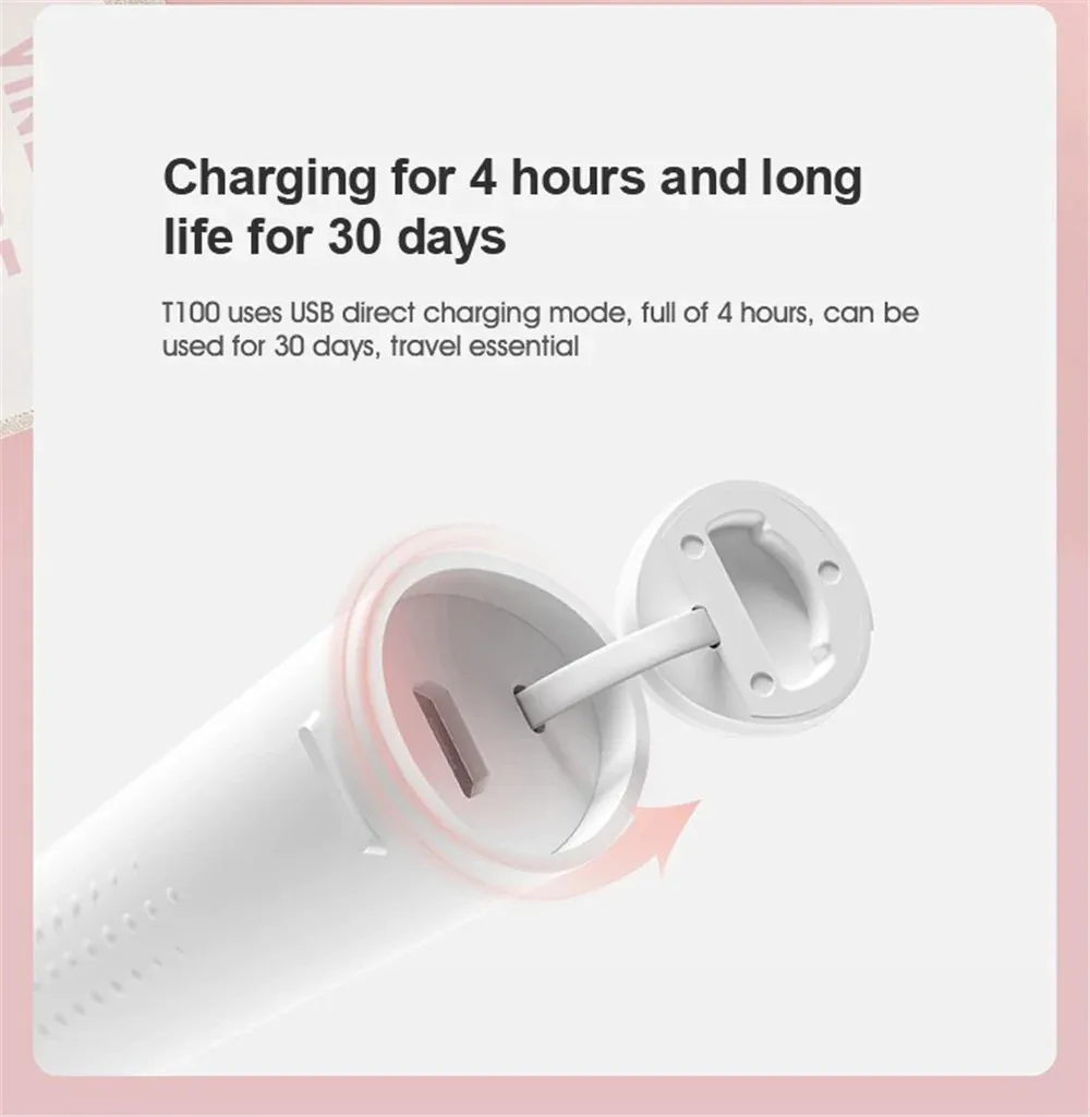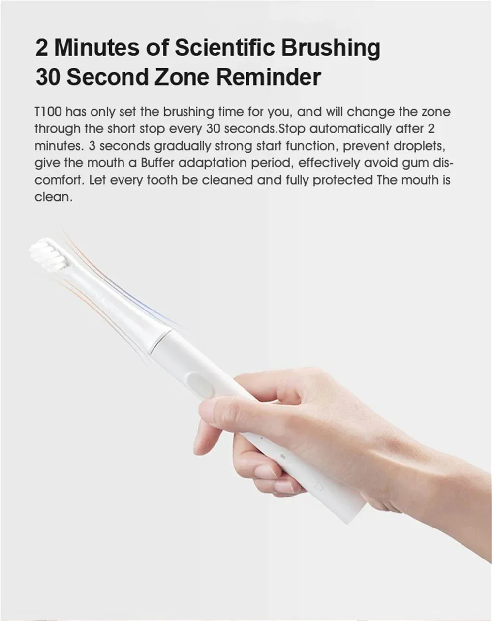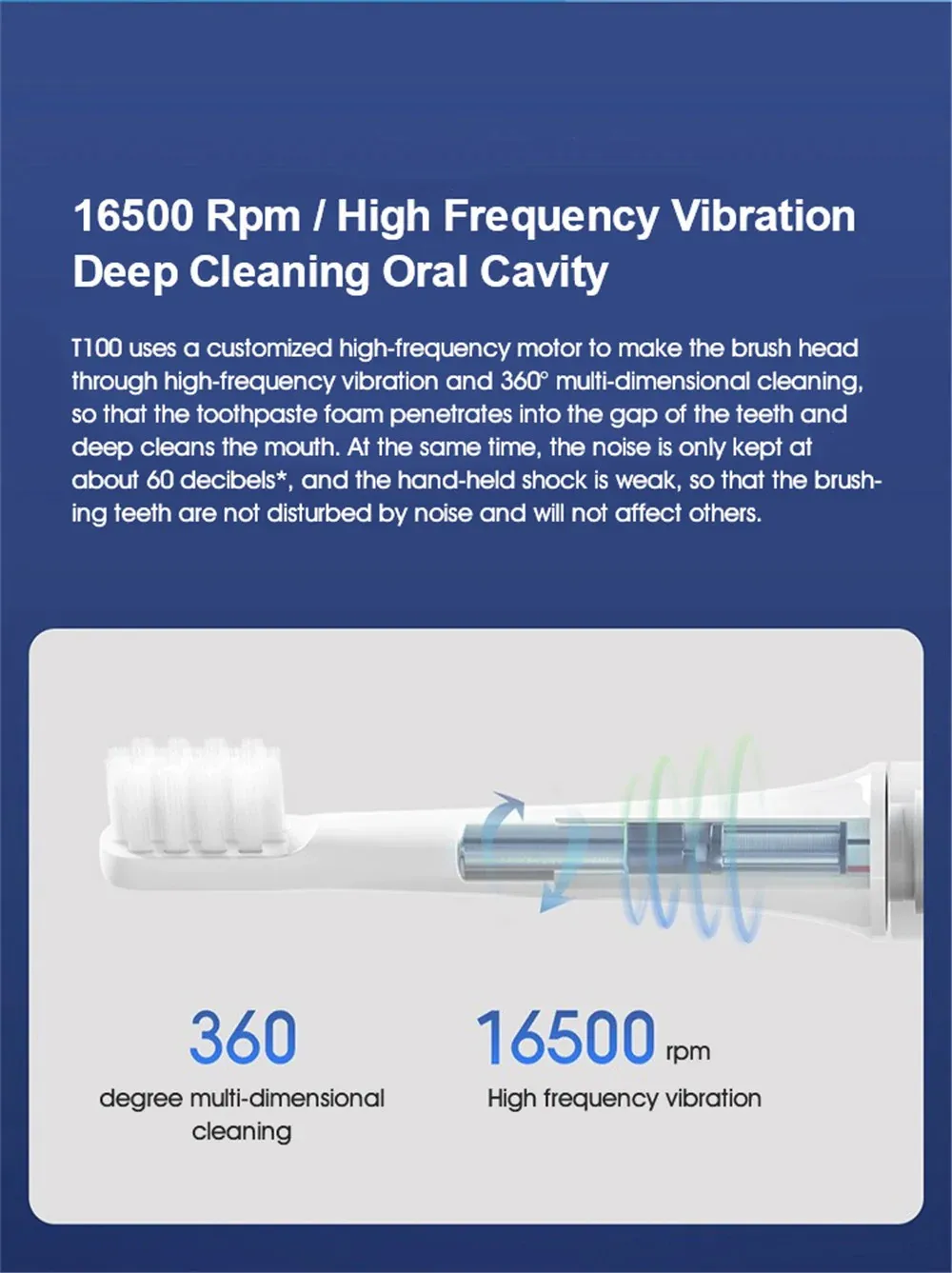 Высокочастотный мотор перевернут, с тем чтобы насадка для зубных щеток может пройти через высокой частоты вибрации и 360-размерные очистки, таким образом, что пена для зубной пасты проникает в зазор зубов, И рот тщательно очищается.
